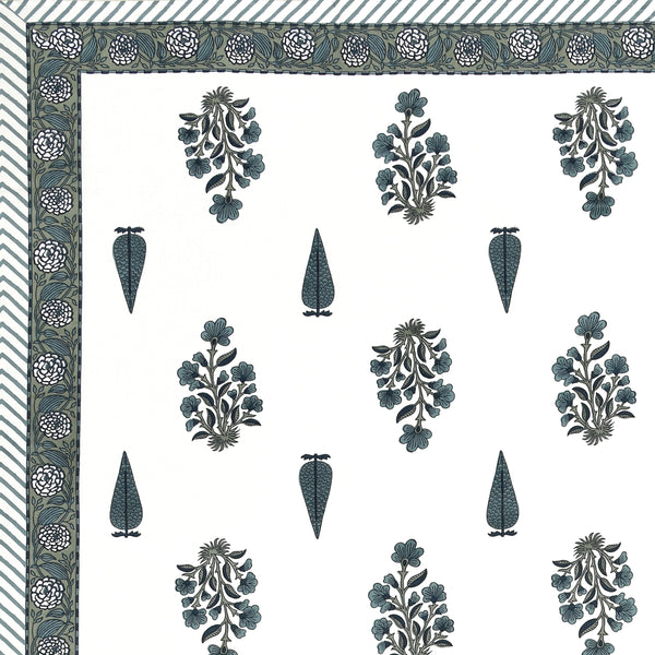 BLOCKS OF INDIA Hand Block Print Cotton King Size Bedsheet (Grey Rose)