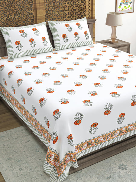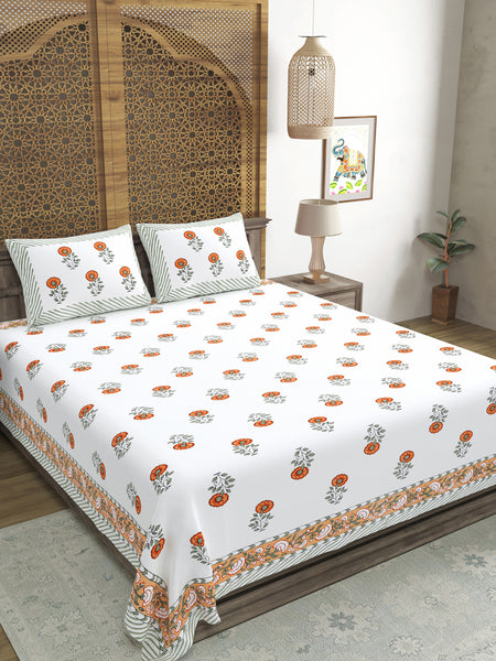 Give a vibrant look to your bedroom this season, get these beautiful Sanganeri print King-size bedsheets.