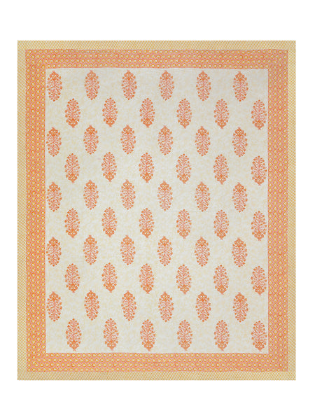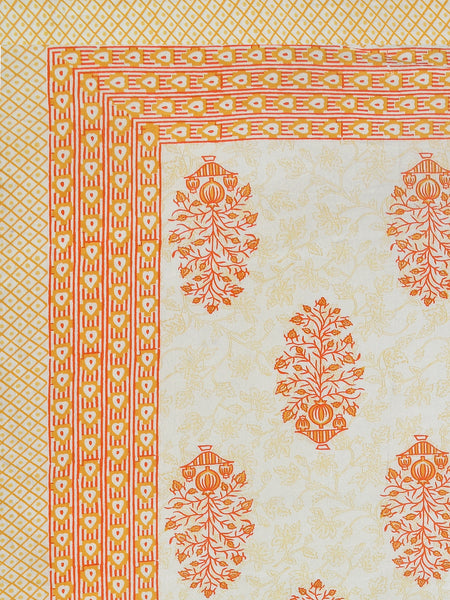 BLOCKS OF INDIA Hand Block Print Cotton King Size Bedsheet (Orange Pot)