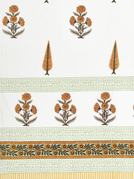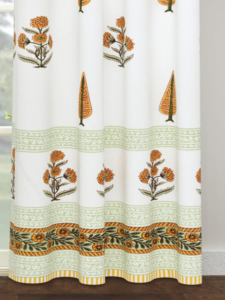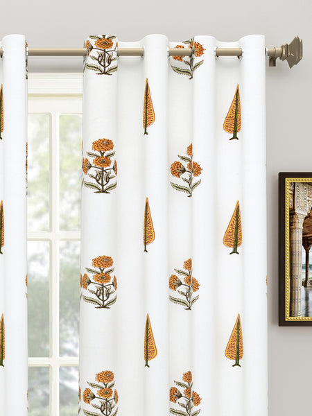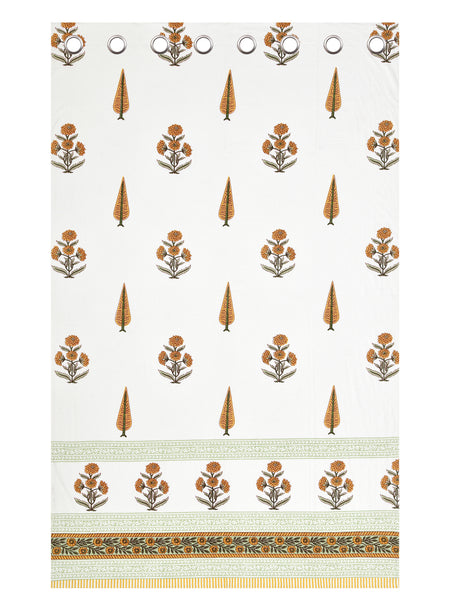 BLOCKS OF INDIA Hand Block Printed Cotton Daylight Curtain with Eyelets(Set of 2 Curtains) (Flower 214 cm / Door)