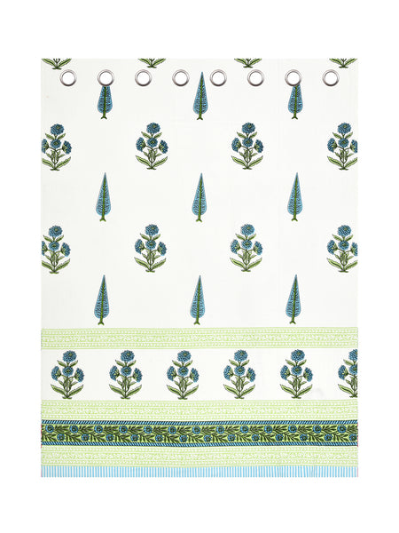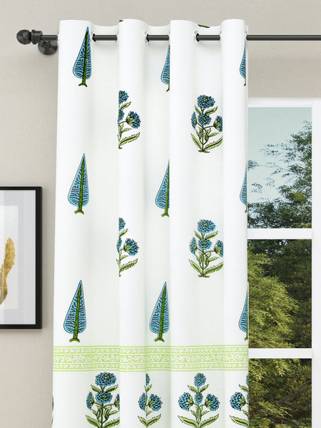 BLOCKS OF INDIA Hand Block Printed Cotton Daylight Curtains with Eyelets(Set of 2 Curtains) (Green PAAN, Window / 153 cm)