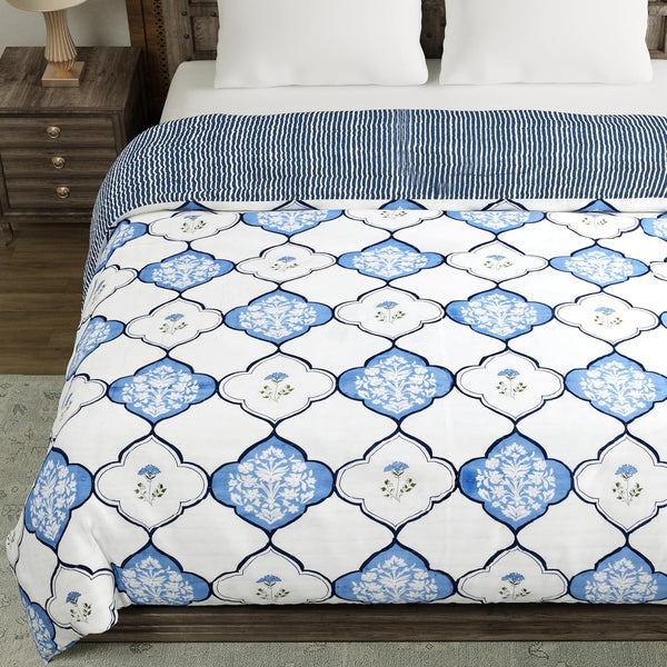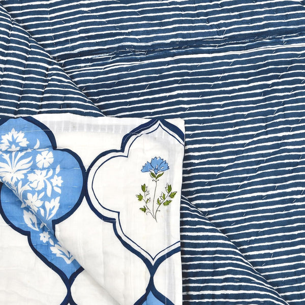 BLOCKS OF INDIA Hand Block Printed Cotton King Size Quilt (Blue Mughal)