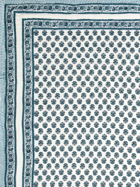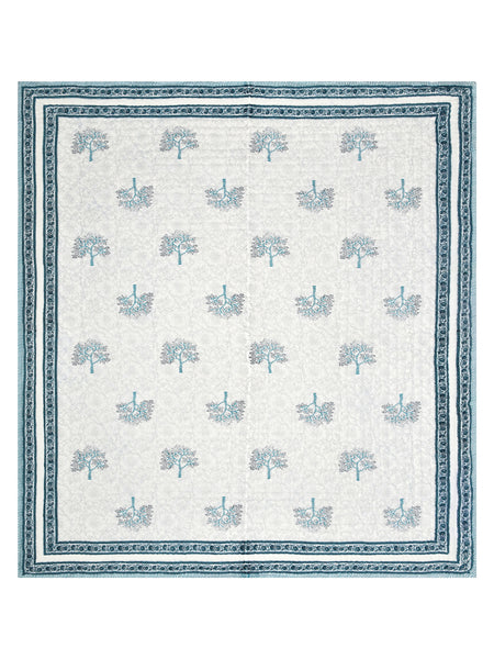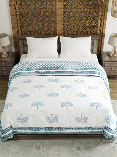BLOCKS OF INDIA Hand Block Printed Cotton King Size Quilt (Blue tree)