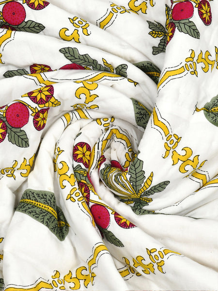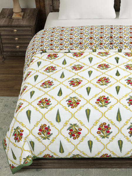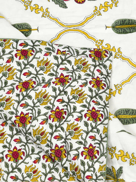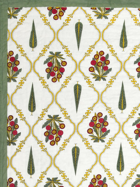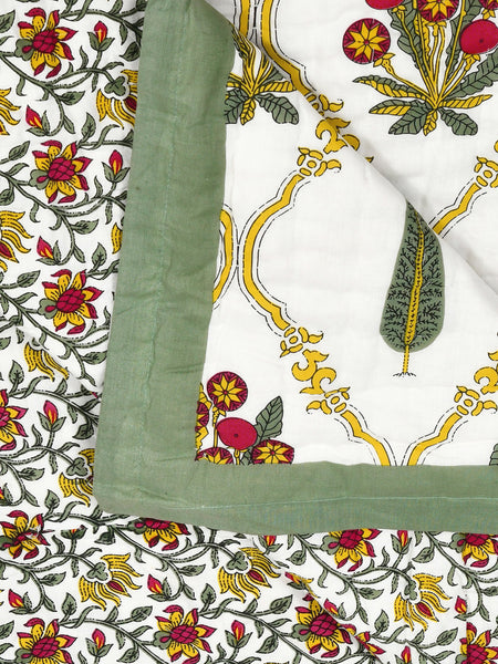BLOCKS OF INDIA Hand Block Printed Cotton King Size Quilt (Green Patti)