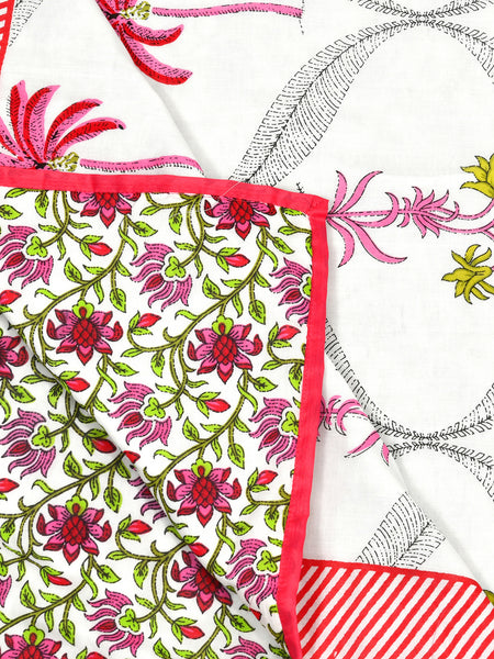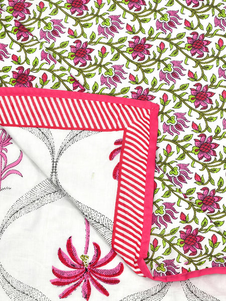BLOCKS OF INDIA Hand Block Printed Cotton Summer Single Size Reversible Printed Malmal Dohar Pink Tree
