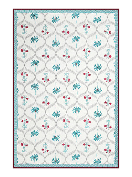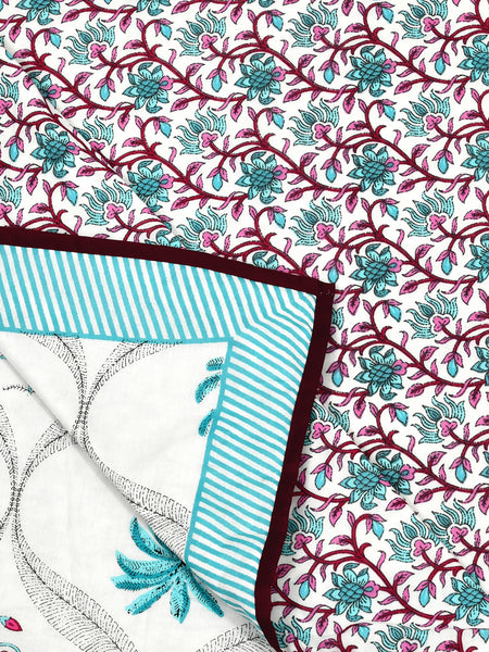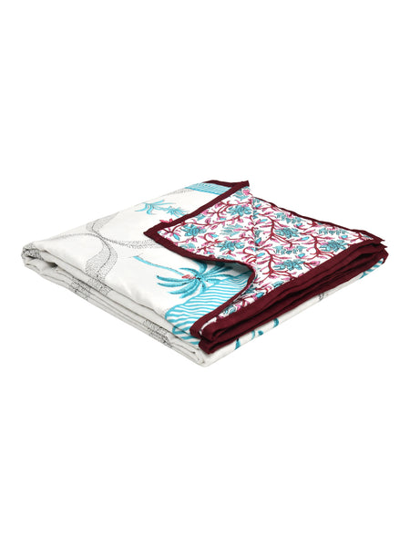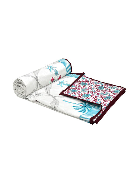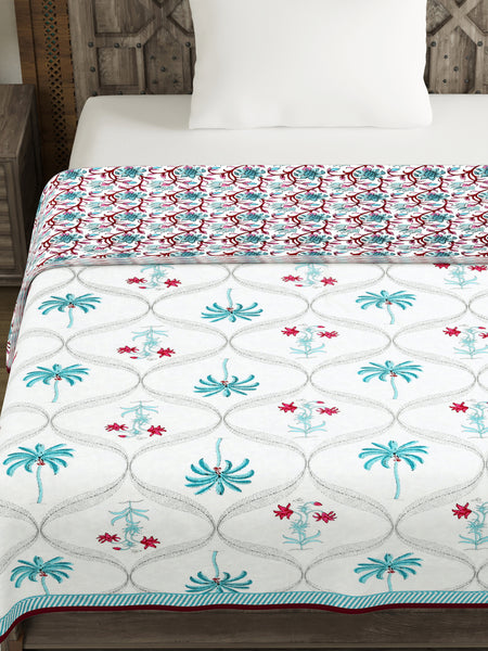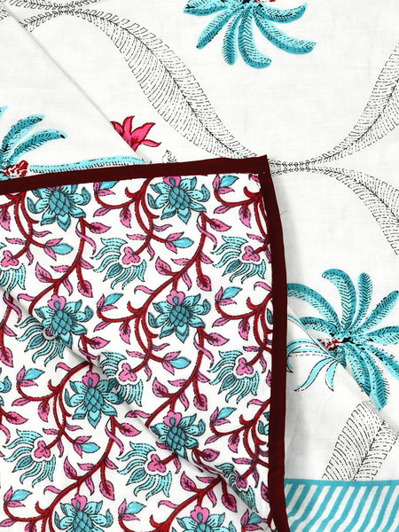 BLOCKS OF INDIA Hand Block Printed Cotton Summer Single Size Reversible Printed Malmal Dohar Turq Tree