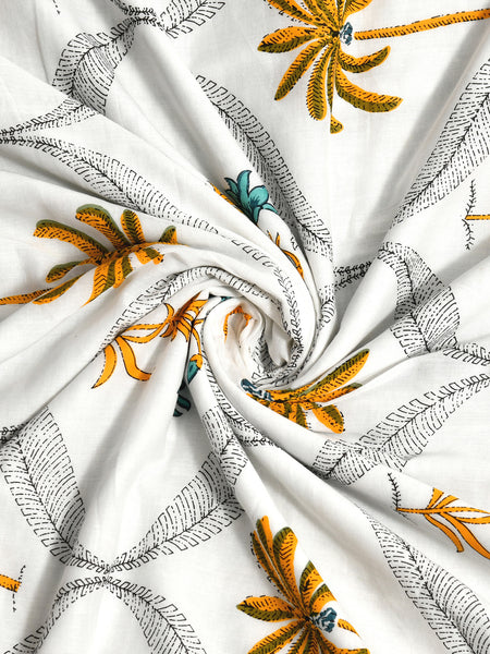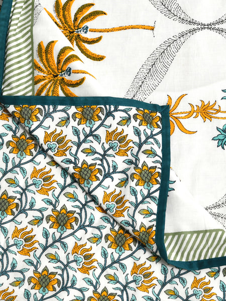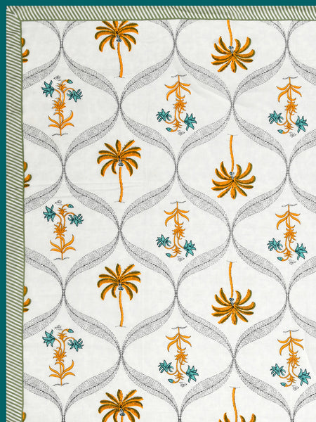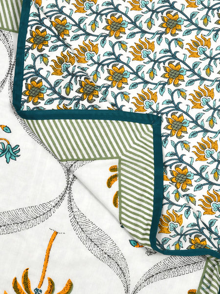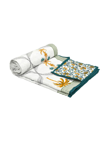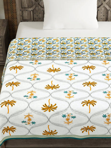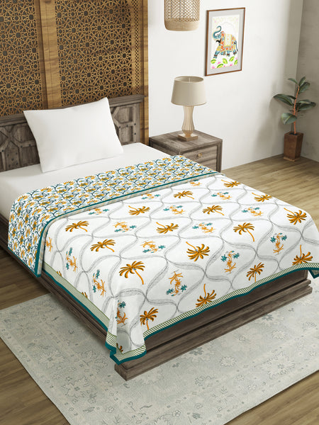 BLOCKS OF INDIA Hand Block Printed Cotton Summer Single Size Reversible Printed Malmal Dohar Yellow Tree