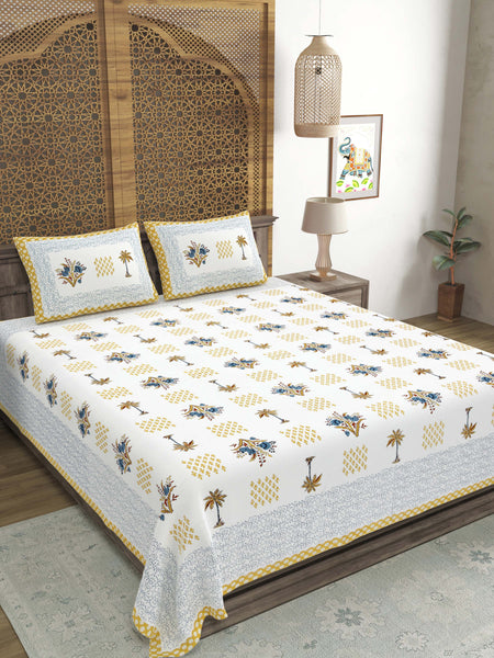 Give a vibrant look to your bedroom this season, get these beautiful Sanganeri print Super king-size bedsheets.