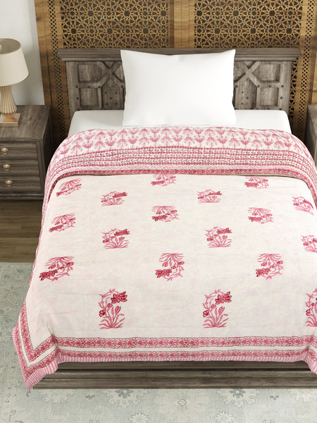 • Treat yourself with this PURE COTTON Quilt made from 60's yarn and high thread count inspired by centuries old Hand Block Jaipuri prints and textile traditions, crafted by artisans of Jaipur.