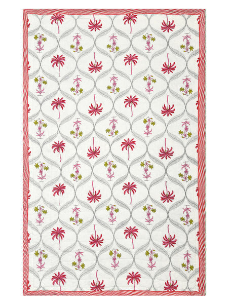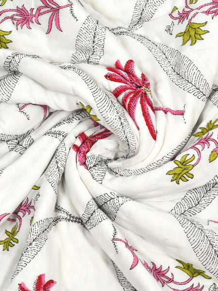 Cotton Single Size Quilt Hand Block Print for Light Winters (150x225 cm) (Pink Tree)