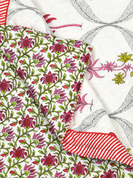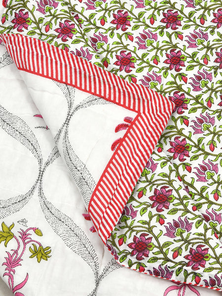 • Treat yourself with this PURE COTTON Quilt made from 60's yarn and high thread count inspired by centuries old Hand Block Jaipuri prints and textile traditions, crafted by artisans of Jaipur.