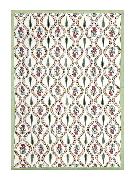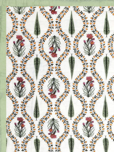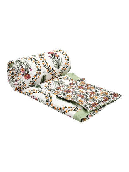 Cotton Single Size Quilt/ Rajai Hand Block Print for Light Winters (150x225 cm) (Green Patti)