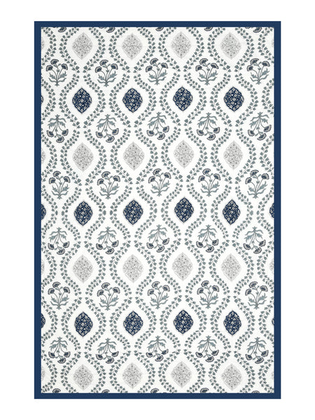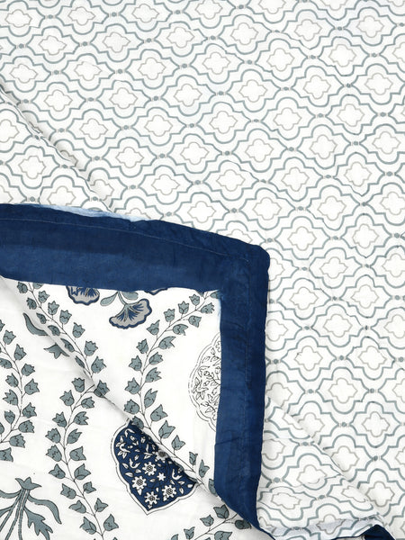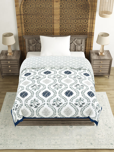 Cotton Single Size Quilt/ Rajai Hand Block Print for Light Winters (150x225 cm) (Royal Blue Motif)
