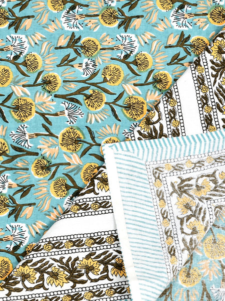 PURE COTTON RAJASTHANI HAND BLOCK PRINT SIX SEATER TABLE CLOTH (BLUE GAD BUTI)