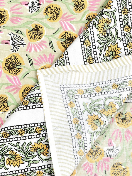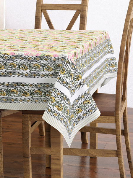 PURE COTTON RAJASTHANI HAND BLOCK PRINT SIX SEATER TABLE CLOTH (GREEN GAD BUTI)